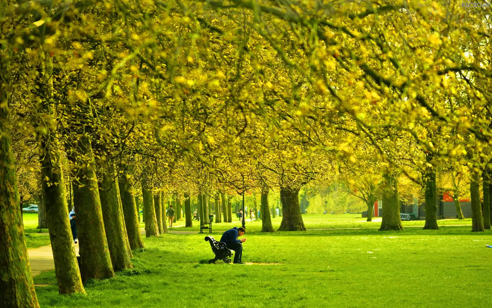 Wiosna, Drzewa, Park, Ławka, Mężczyzna, Alejki, Ludzie - faceci.biz